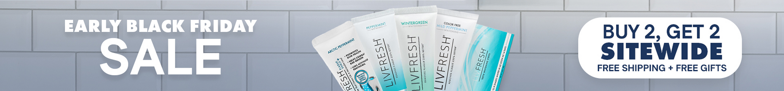Using a special foaming action and a burst of Wintergreen flavor, LIVFRESH uses Activated Edathamil on a molecular level to reduce plaque 250% better and improve gum health 190% better.