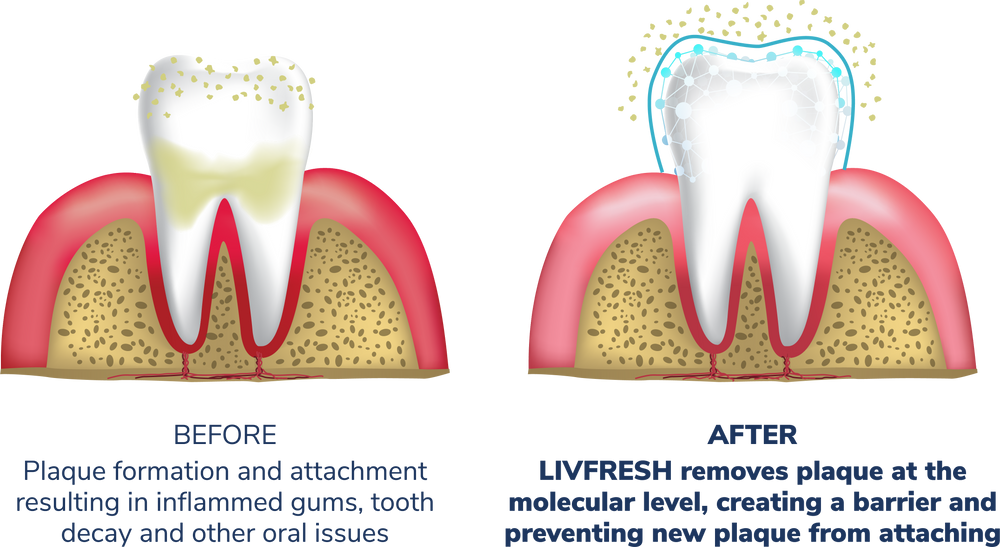 LIVFRESH Removes Plaque & Heals Gums On A Molecular Level