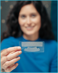 - Gently apply pressure, pushing the strips into the surface of your teeth to ensure no slippage.
